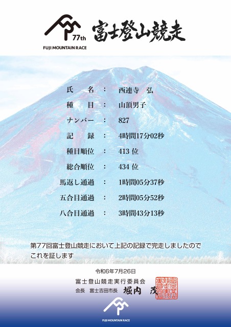 - 富士登山競走・山頂コース参加(五合目コース2時間20分以内)
