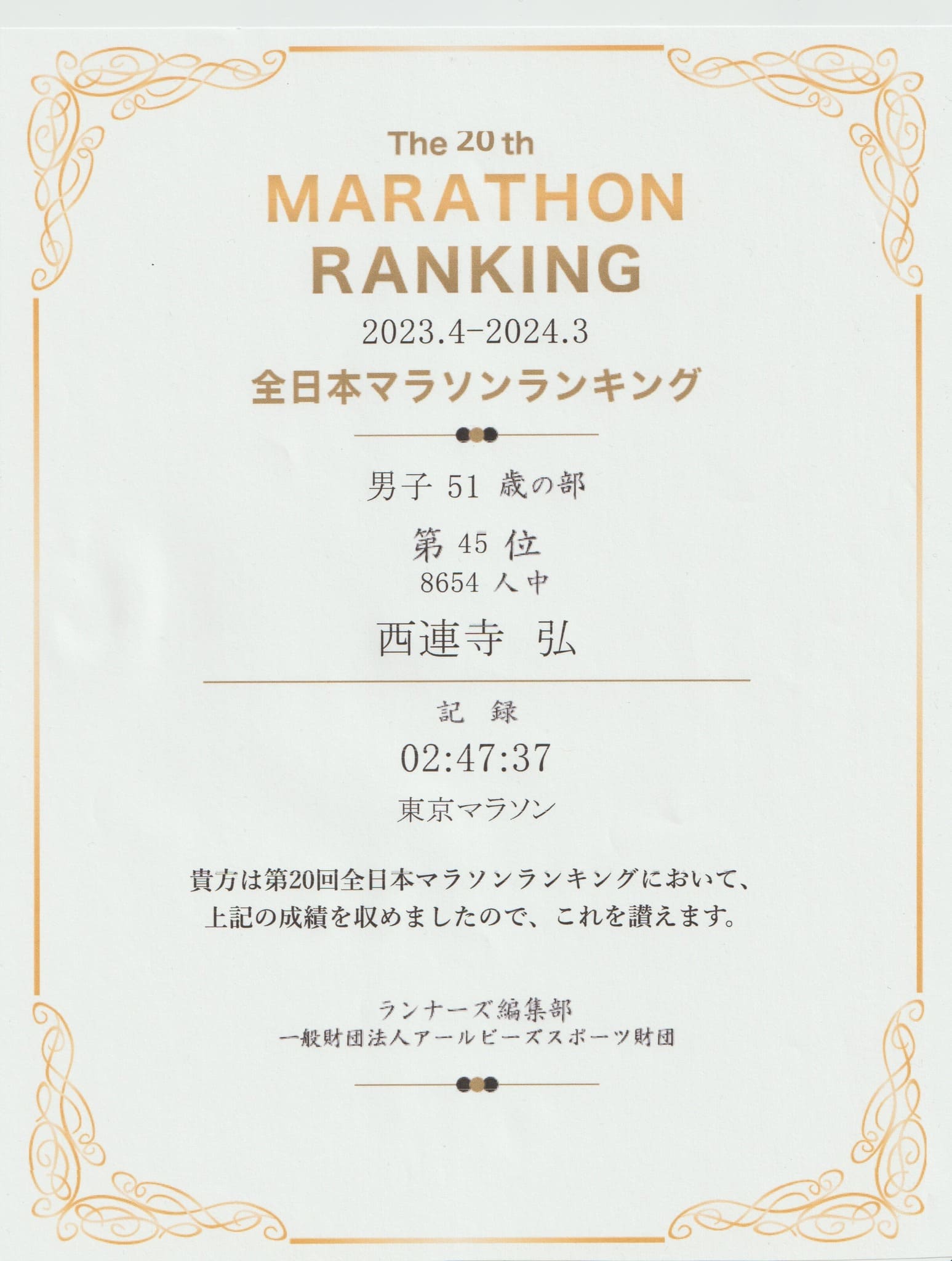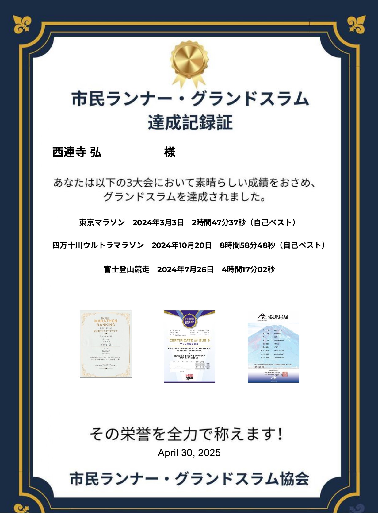 「市民ランナー・グランドスラム協会」会長の西連寺 弘(サイレンジ ヒロシ)と申します。